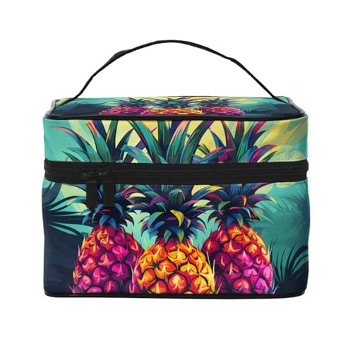 HSYOYO Makeup Bag for Women Travel Cosmetic Bag Large Makeup Case Portable Toiletry Skincare Organizer Bag, Neon Pineapple, One Size