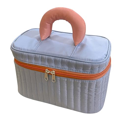 FRCOLOR Large Travel Cosmetic Storage Bag Handle, Multipurpose Toiletry Makeup Pouch for Women, Blue Portable Skincare Organizer for Travel and Daily Use