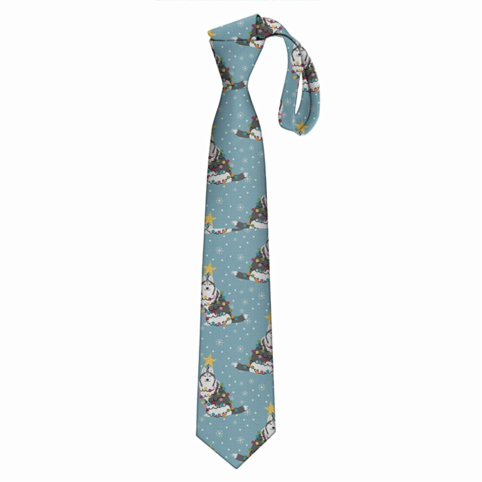 (Siberian Husky Christmas Tree=5585) Men's Tie Printed Skinny Tie Fashion Cool Necktie for Men, Casual Gentleman Novelry Funny Suit Neck Ties