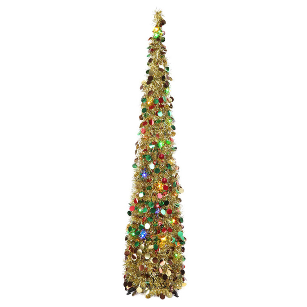 Collapsible Artificial Christmas Tree, Pop Up Tinsel Tall Skinny Tree with Stand, Sequin Pencil Tree for Apartment Home Office Store, Compatible with