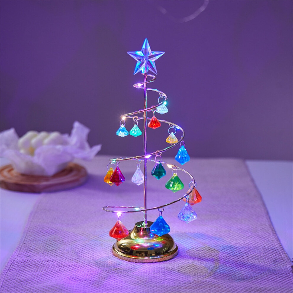Comefolife Small Christmas Tree with Lights, Table Top Pre-lit Artificial Mini Crystal Tree, LED Glass Skinny Desktop Xmas Decor Compatible with