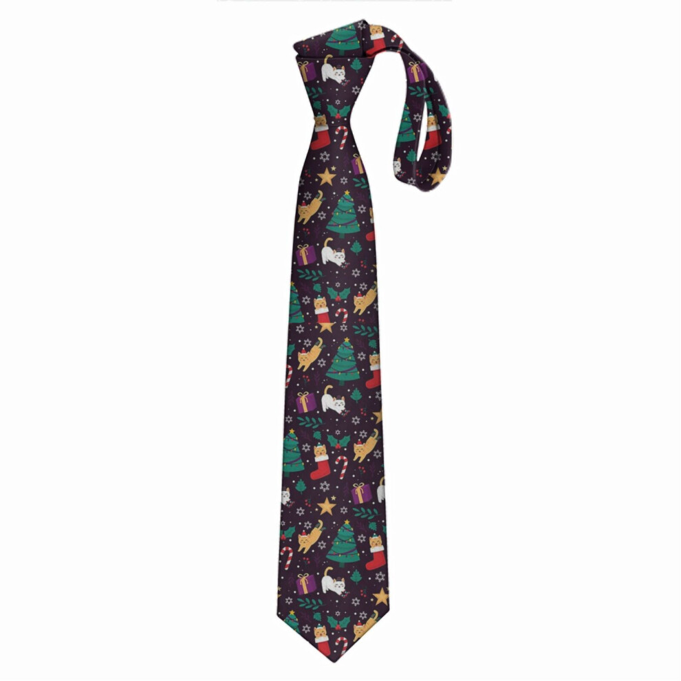 (Cute Cats Christmas Tree Pattern=6506) Men's Tie Printed Skinny Tie Fashion Cool Necktie for Men, Casual Gentleman Novelry Funny Suit Neck Ties
