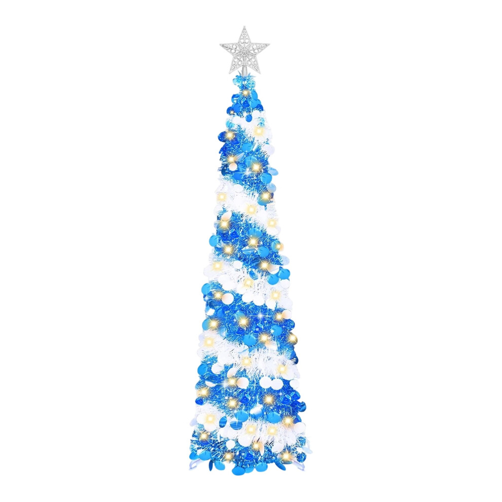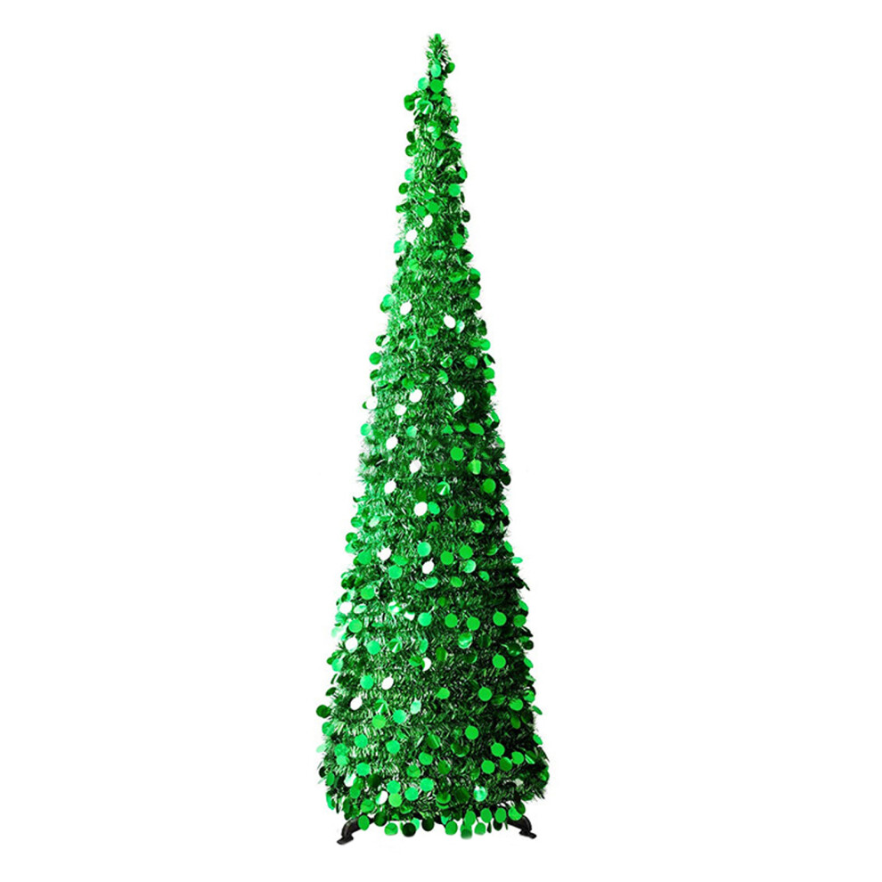5ft Collapsible Artificial Christmas Tree,Pop Up Tinsel Coastal Christmas Tall Skinny Tree Sequin Pensil Tree for Apartment Home Store Holiday