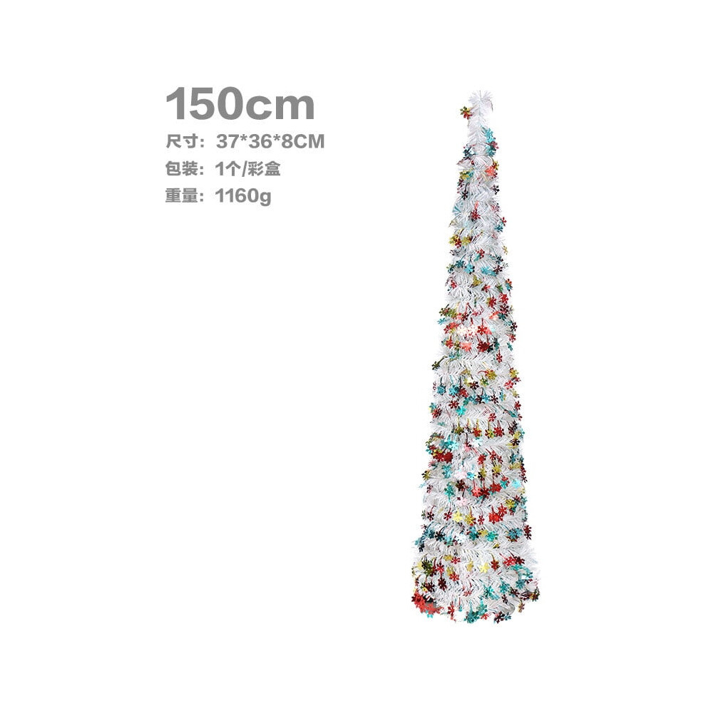 5Ft/1.5M Pop up Collapsible Christmas Tree with Lights, Silver Tinsel Skinny Pen