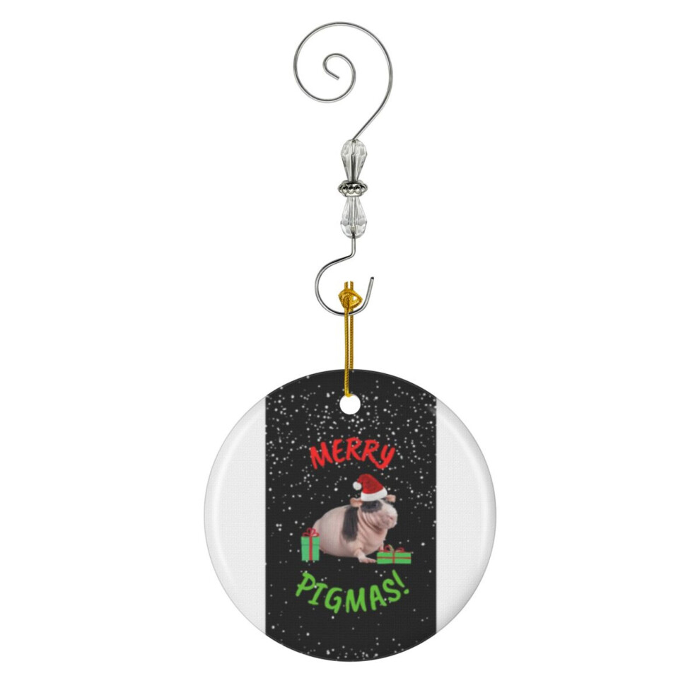 (Merry Pigmas Christmas Skinny Guinea Pig Santa Funny-3831) Christmas Ornaments Ceramic Charm with Hook Crystal Handmade Xmas Tree Decorations Keepsak