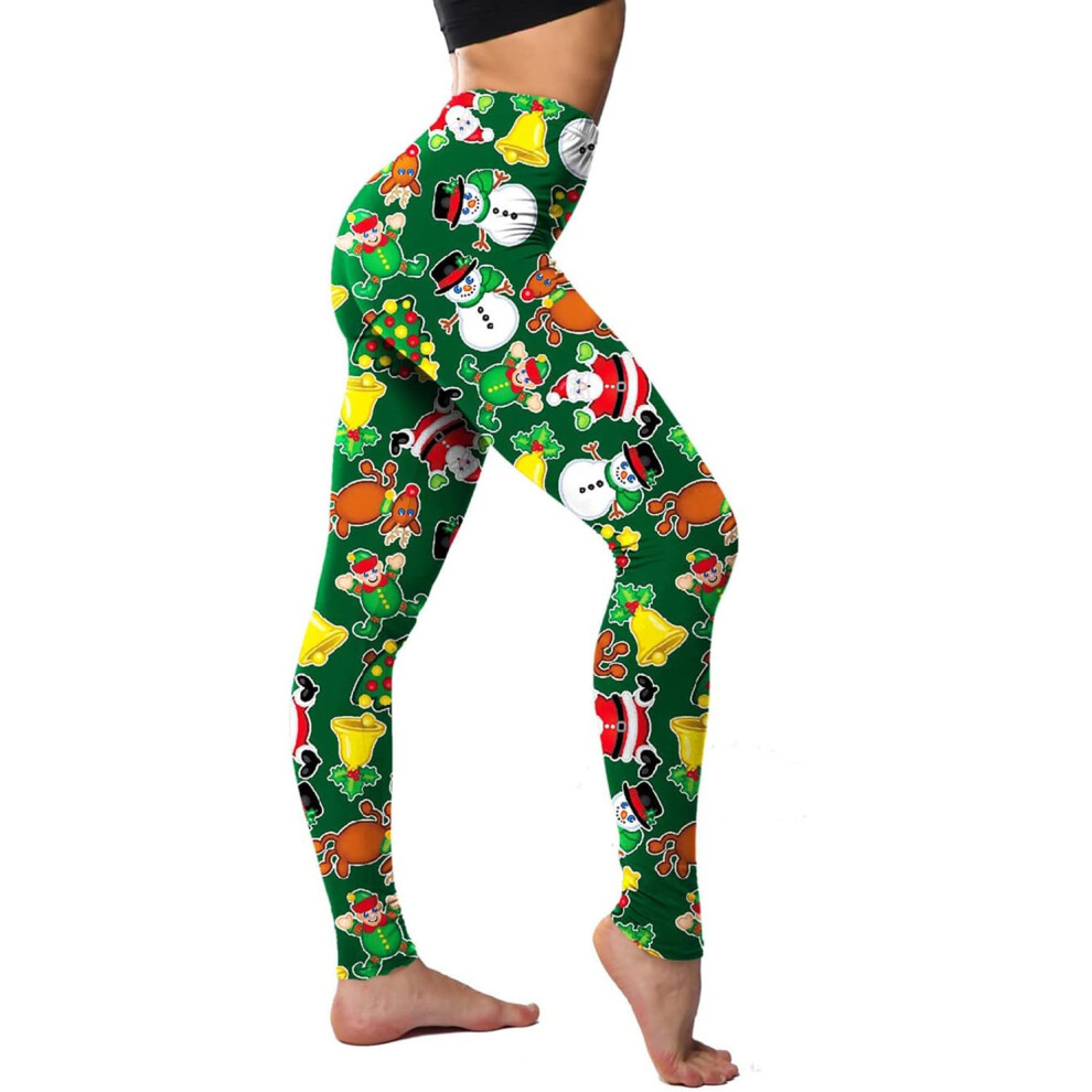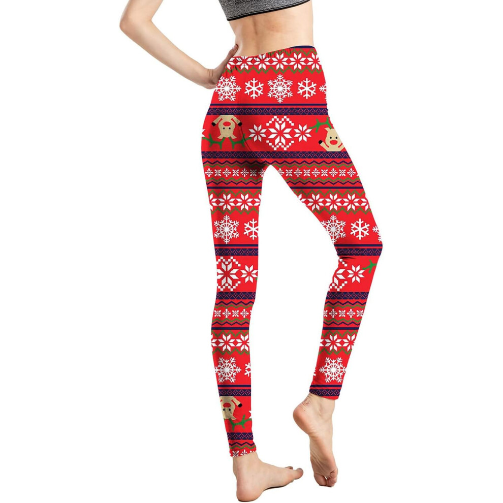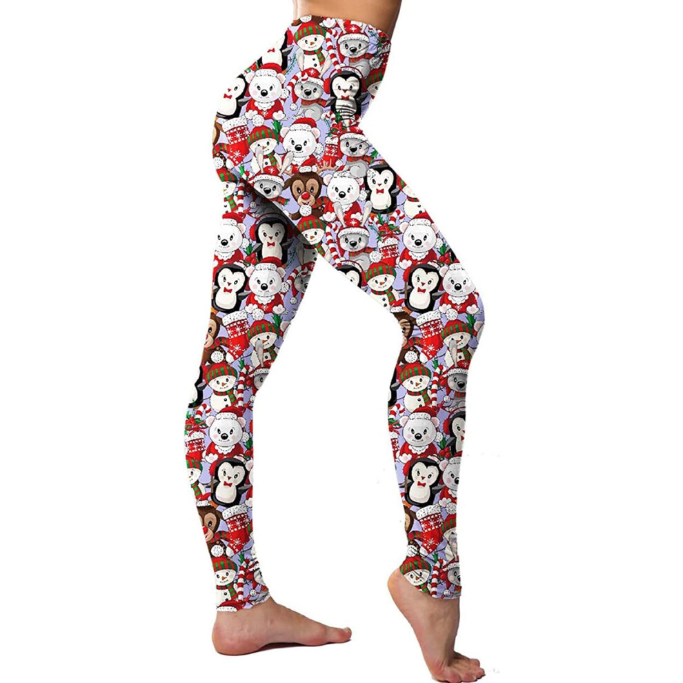 (B) Women Ladies Christmas Costume Leggings Reindeer Printed Xmas Tree Leggings Elasticity Skinny Printed Stretchy Pants Trousers