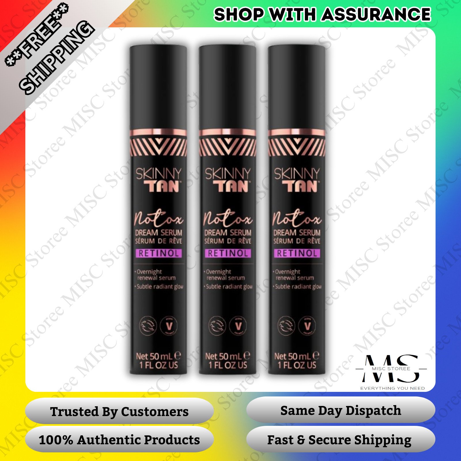 3 x Skinny Tan Notox Retinol Dream Serum Net overnight 50mlx3