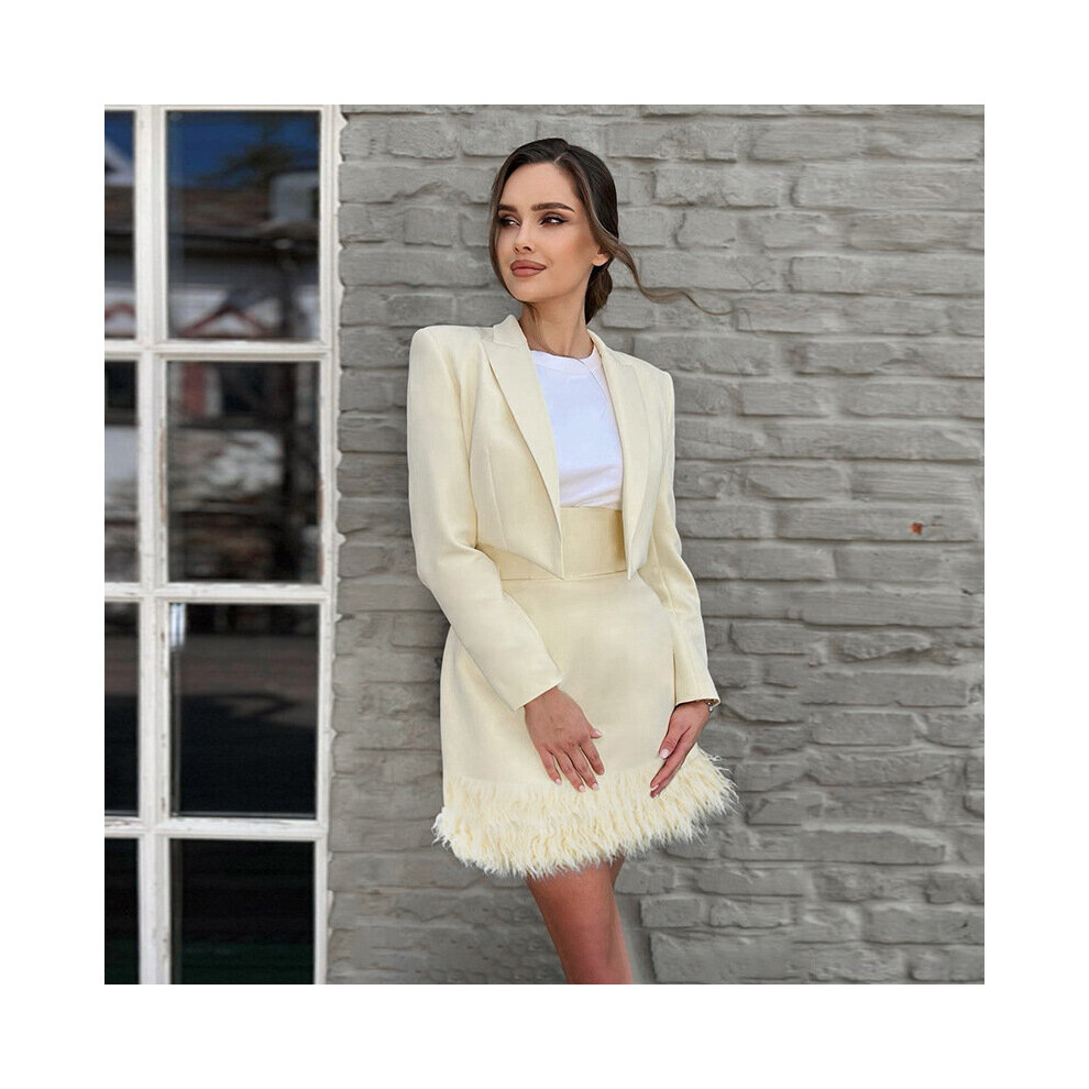 Cropped Blazer Jacket And Mini Skirt Sets Fall Winter Two Piece Set Womens Outfit Co ord Set Feather Party Club Outfits