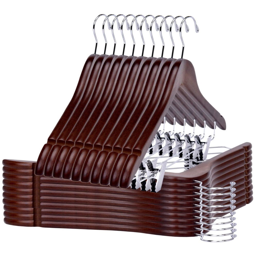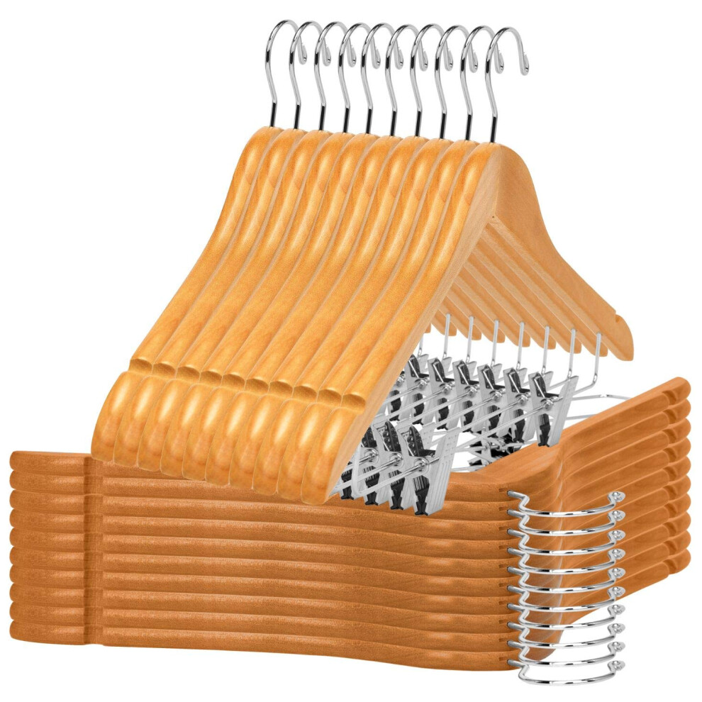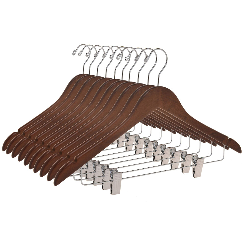 The Hanger Store 10 Wooden Trouser, Skirt Hangers With Clips, Coat Clothes Hangers