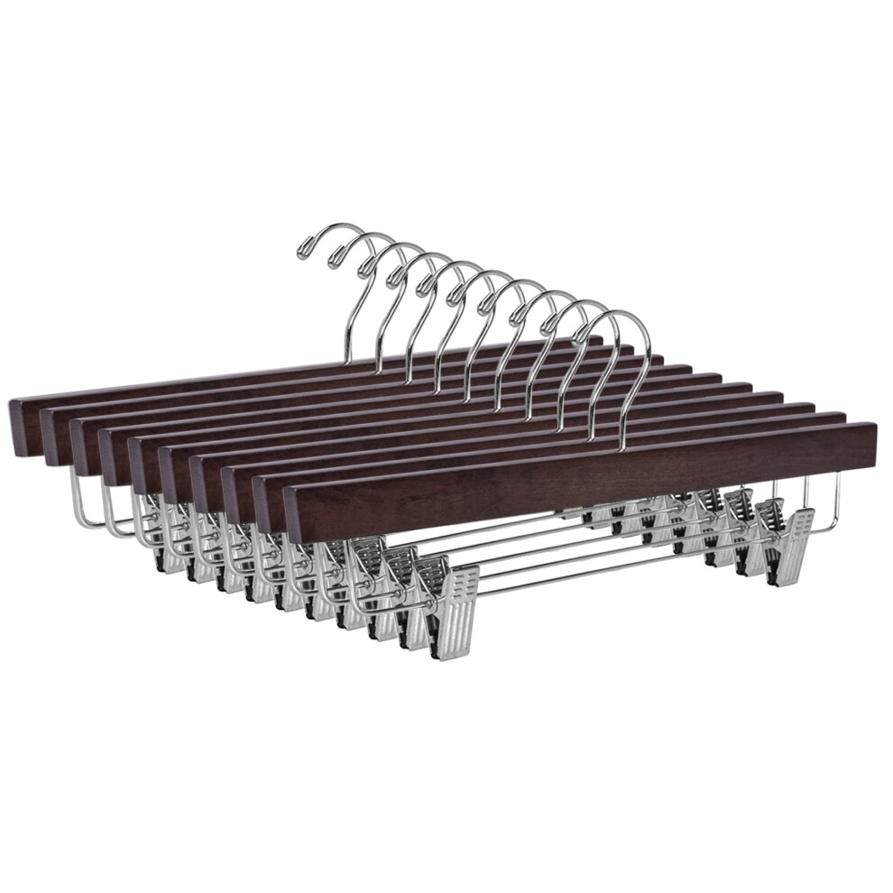 10 Pack Solid Finish Wooden Trousers/Skirt Hangers with -Rust Clips Coat9067