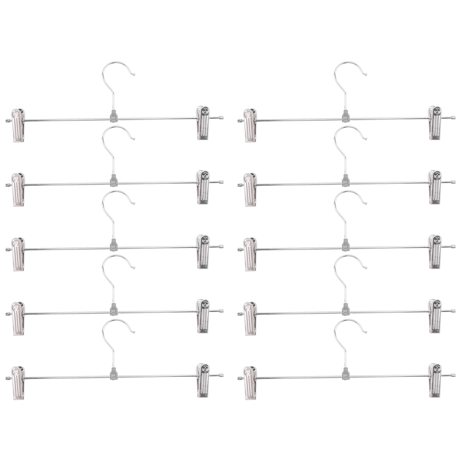 Pack of 10 Skirt Hangers with Adjustable Non-Slip Clips, Trouser Hangers