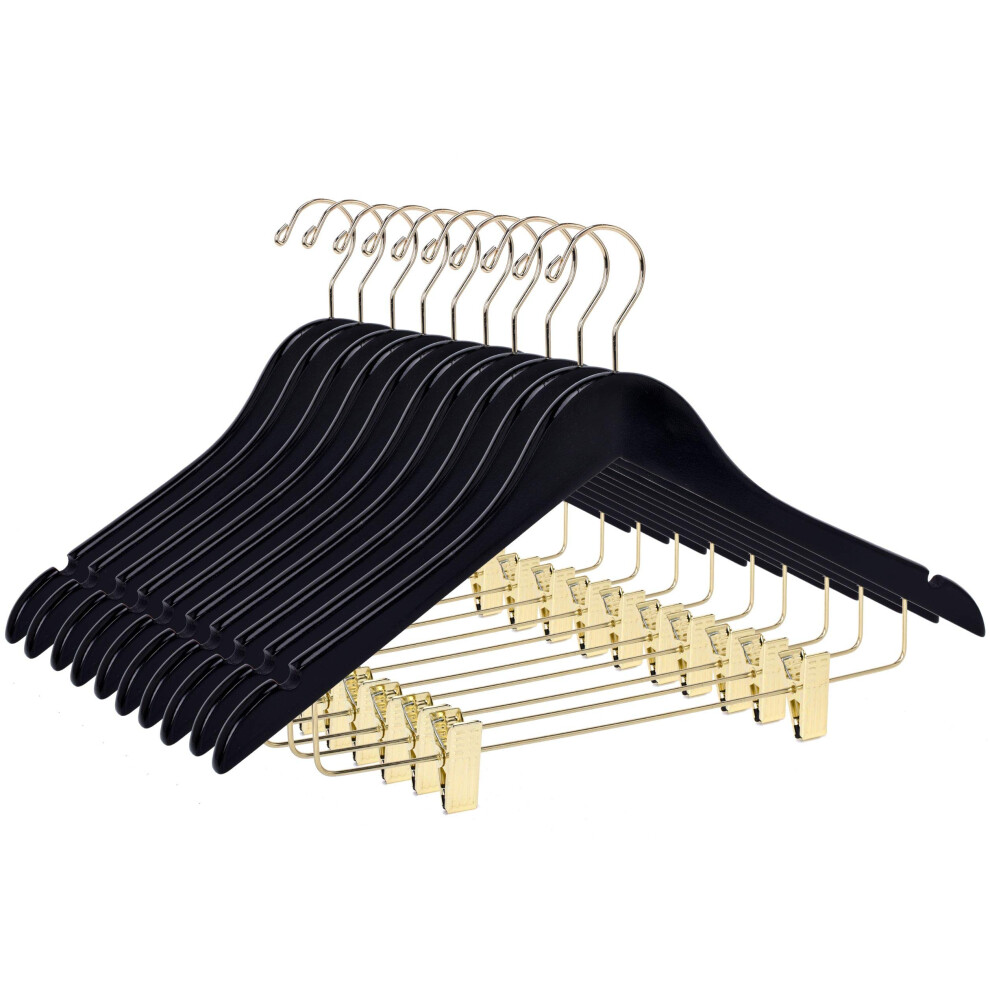 The Hanger Store 10 Black Wooden Trouser, Skirt Hangers With Clips, Coat Clothes Hangers