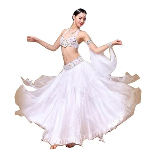 PONNYC White,M, Belly Dancing Dresses for Women Belly Dance Crop Top Bra And Hip Scarf Slit Skirt Belly Dancing Suits Halloween Outfit