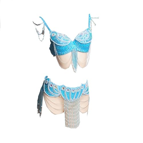 PONNYC Blue,S, Belly Dance Dresses for Women Belly Dance Suits Belly Dancer Costumes Hip Skirt with Bra Halloween Carnival Outfit