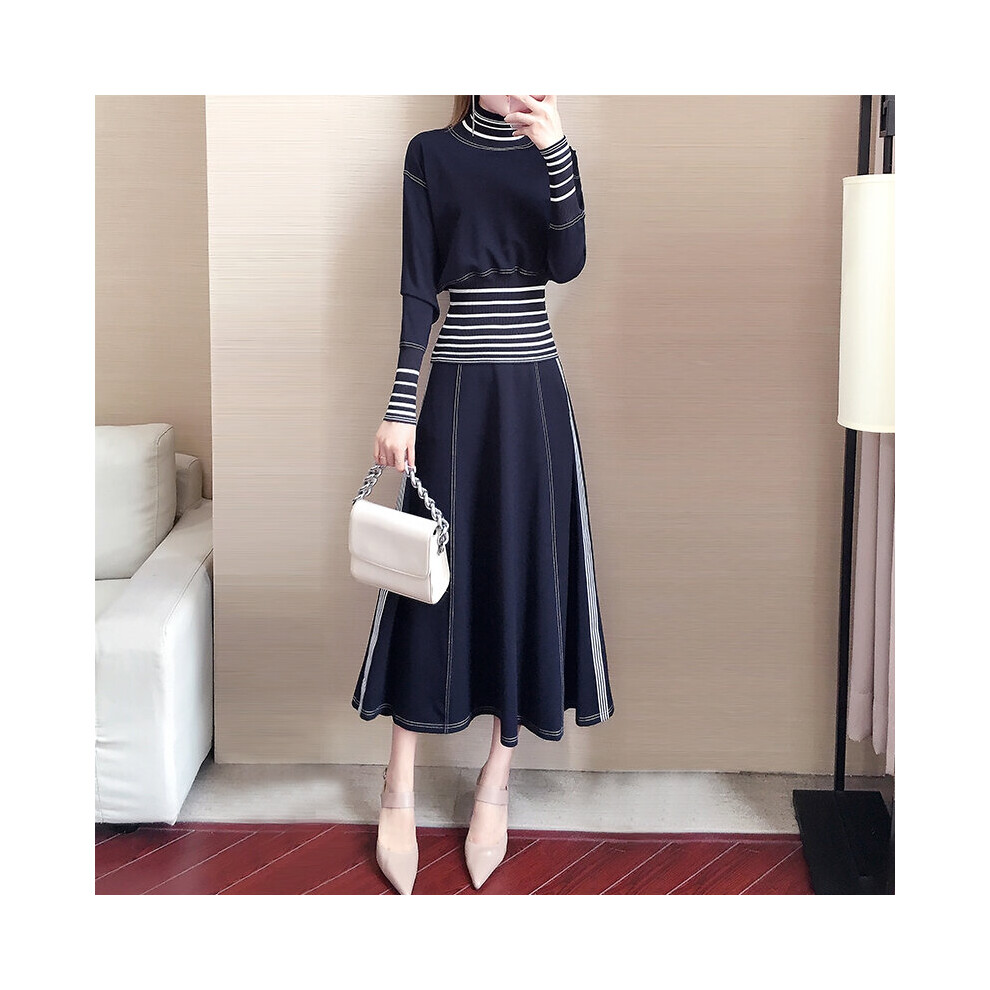 Spring Autumn 2 Piece Skirt Suits Sets Women Turtleneck Sweatshirts + Pleated Long Skirt Suits Casual Vintage Set