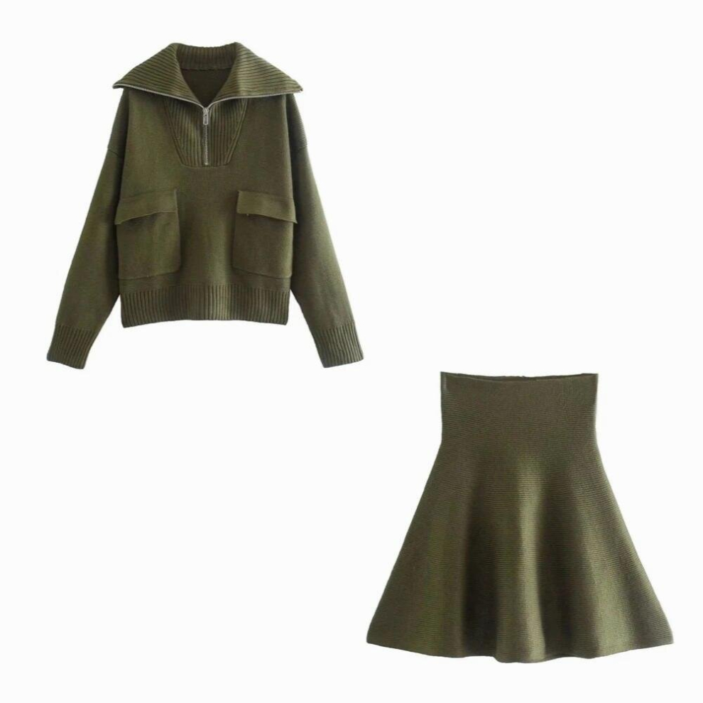 Knitted Skirt Suits For Women Two Piece Set Women Skirt Zipper Solid Tops High-Waisted Mini Skirt Women Knitted Suit