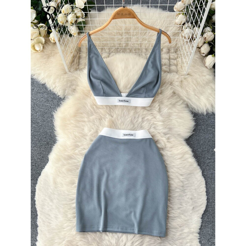 Sexy Spliced Tube Top Crop Tops And Bodycon Skirt Suits Women Side Split Dress Set Female Reversible Sleeveless Outfits