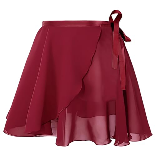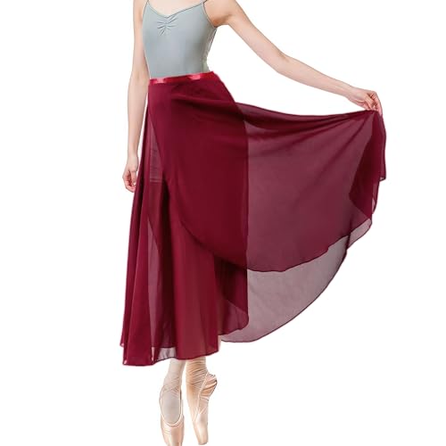 AYBUY Women Ballet Wrap Skirt, Sheer Chiffon Dance Skirts with Adjustable Waist Tie Gymnastics Ballet Skirt for Adult Girls(Wine Red)