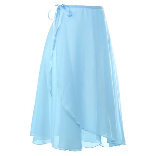 zffriction Women Ballet Skirt Long Sheer Dance Wrap Skirts Chiffon Skirts with Adjustable Waist Tie for Adult Girls (UK, Alpha, One Size, Regular, Regular, Blue)