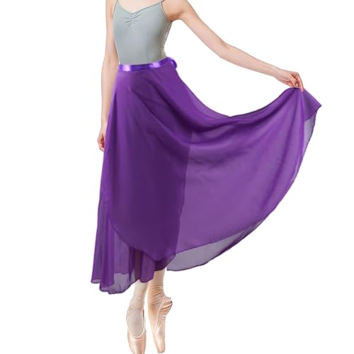 Baisdan Women Ballet Wrap Skirt Chiffon Sheer Long Ballet Dance Skirt Dancewear Purple