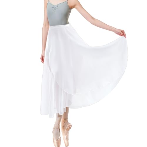 AYBUY Women Ballet Wrap Skirt, Sheer Chiffon Dance Skirts with Adjustable Waist Tie Gymnastics Ballet Skirt for Adult Girls(White)