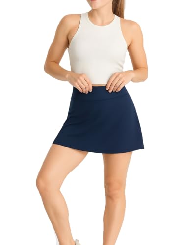 4How Athletic Skirts with Short for Women UK 2025 High Waisted Tennis Golf Yoga Workout Skort with Pockets Navy XL