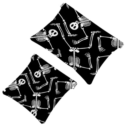 2 PCS Skeleton Skull Pattern Pocket Cosmetic Bag, Self-Closing Shrapnel Makeup Pouch, Portable No Zipper Mini Travel Make Up Bag for Headphones Coin Lipstick Cosmetics Earphones Jewelry Organizer