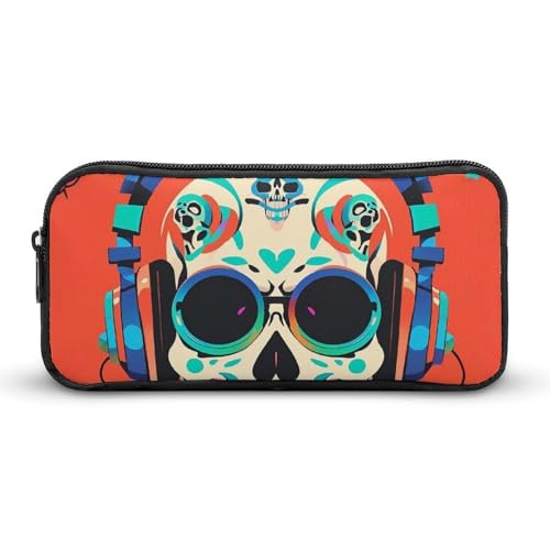 LPSADGF Punk Rock Earphones Skull Pencil Pouch Large Capacity Pencil Case - Multi-Use Zippered Pen Organizer, Portable Makeup Bag & Travel Pouch for Office Stationery (8.7x4.7)