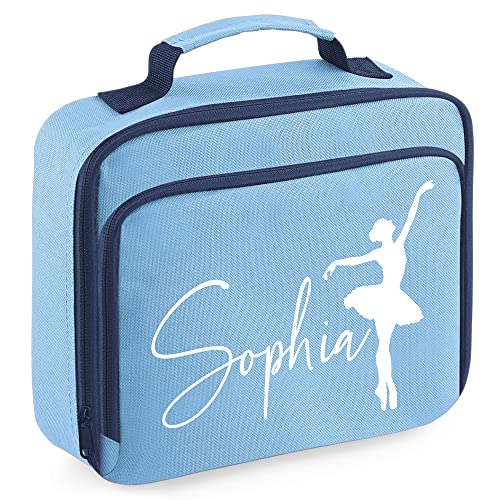 Personalised Ballet Dancer Lunch Bag, Girls Ballerina Lunch Cooler Bag, Back to School Gifts for Daughter, Kids Primary Nursery Ballet Dancing Class Lunch Box, Sky Blue