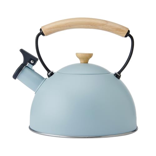 Buckingham Stainless Steel Whistling Kettle Sky Blue with Cool Touch Handle Suitable for Camping Hiking Indoor & Outdoor Use 2.5 Litres