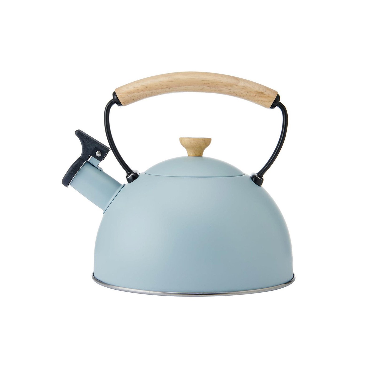 La Cafetiere 1.6L Sky Blue Whistling Kettle, Stainless Steel with Wooden Handle