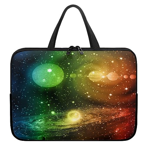 Surwin Starry Sky Laptop Sleeve Case, Waterproof Laptop Cover Bag with Handle and Zipper, Planet Pattern (15 inch)