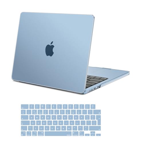 MOSISO Compatible with MacBook Air 13 inch Case M4 M3 M2 2025 2024 2023 2022 A3240 A3113 A2681 Touch ID, Hard Shell Cover for MacBook Air 13.6 inch Case with Keyboard Cover Skin, Crystal Sky Blue