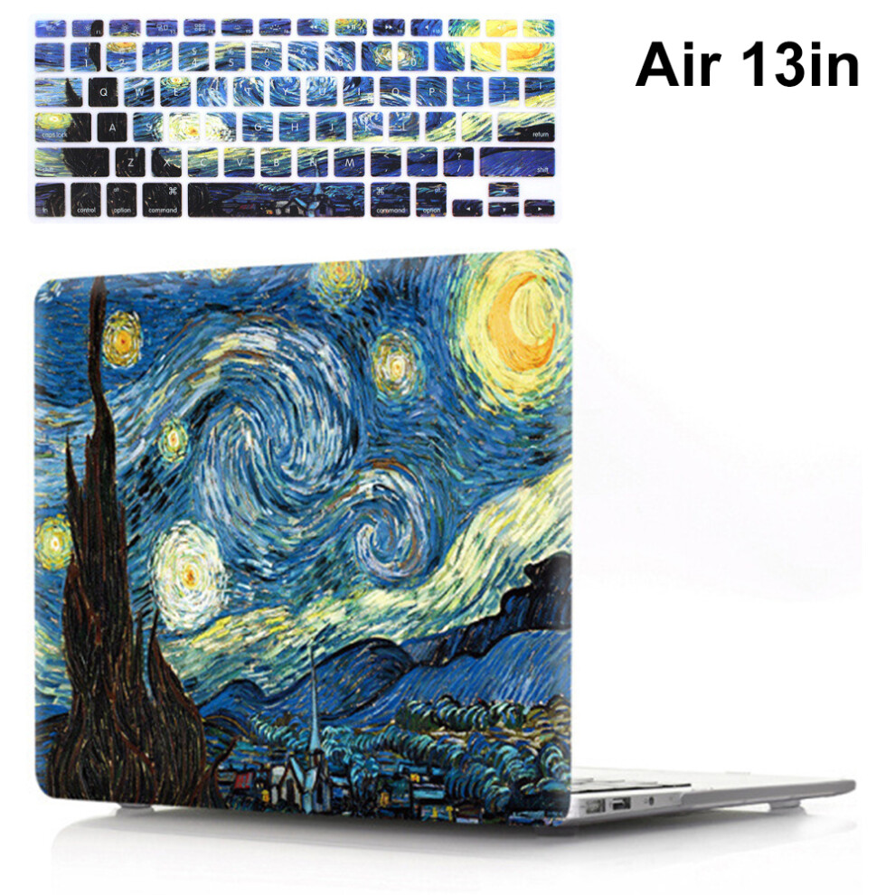 For MacBook Air 13" Plastic Hard Shell Cover Compatible Laptop Sleeve with Keyboard Film-Van Gogh starry sky