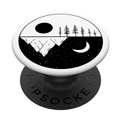 PopSockets All Black Mountains Trees Forest Sun Moon Stars Night Sky PopSockets PopGrip: Swappable Grip for Phones & Tablets