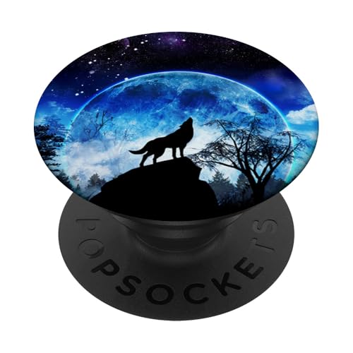 PopSockets Wolf Howling in the Moonlight Blue Sky Gifts for Wolf Lover PopSockets PopGrip: Swappable Grip for Phones & Tablets