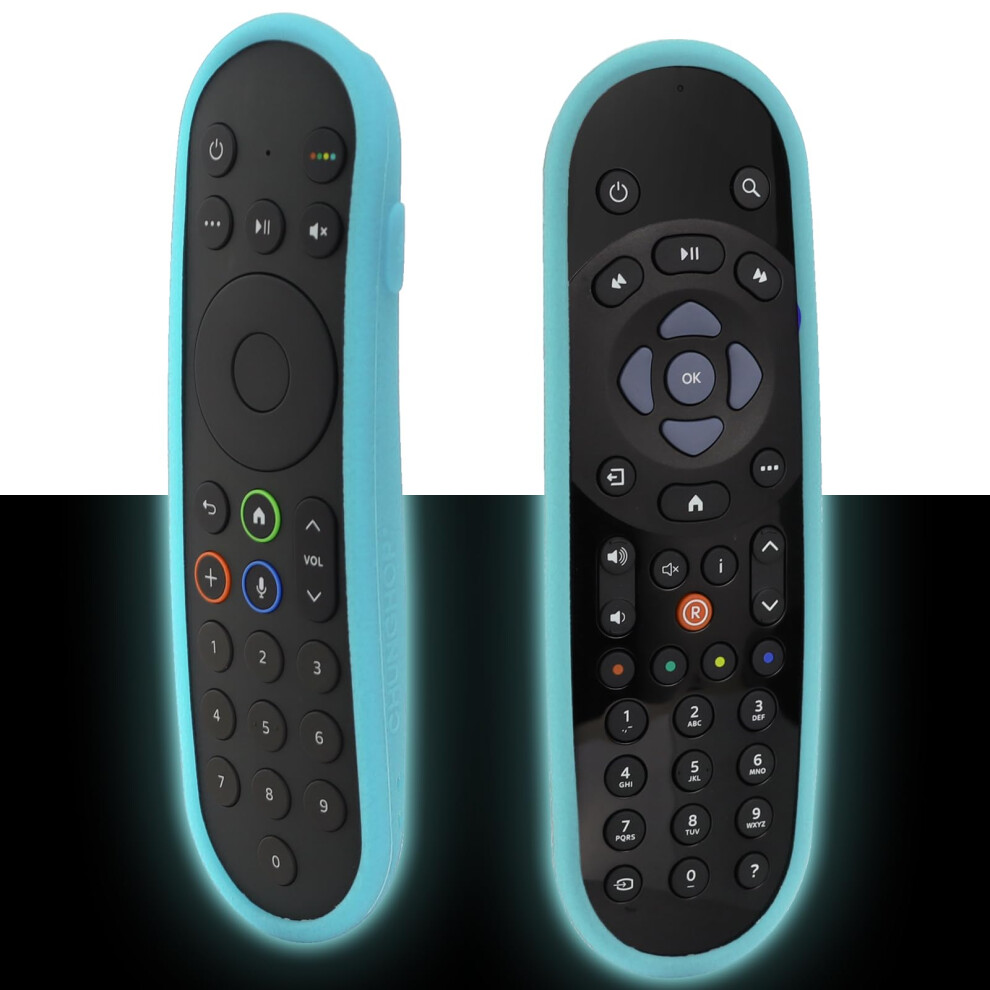 Remote Case Cover Fit for Sky Q Touch and Non-Touch Remote Control, Also for Sky Glass/Stream TV Remote, Anti-Slip, Anti-Lost with Strap - Glow Blue