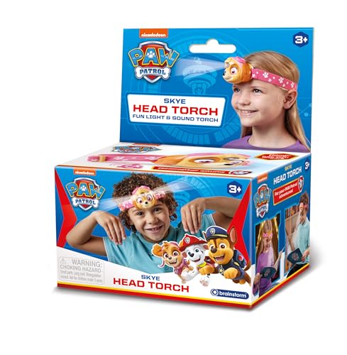 PAW Patrol Kids Head Torch Skye with Helicopter Sound – LED Headlamp for Children, Adjustable Strap, Light & Sound Toy, Hands-Free Torch for Camping, Night Reading & Fancy Dress