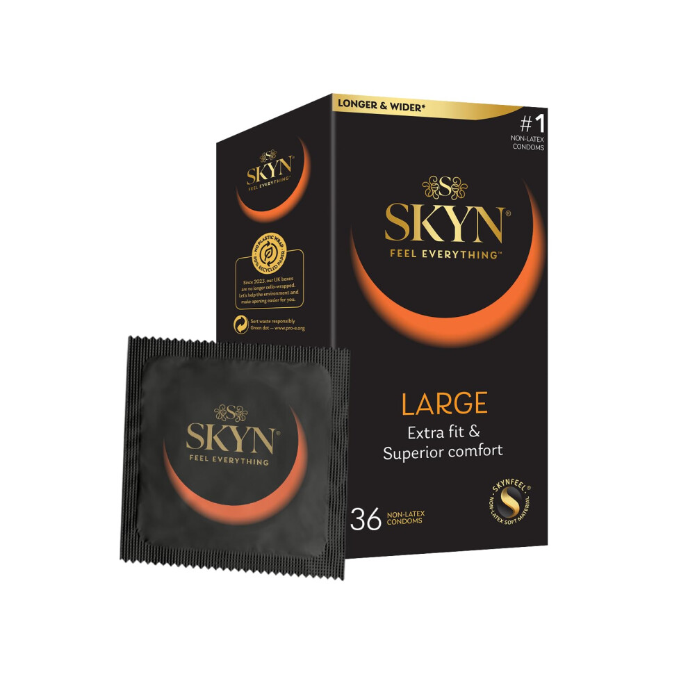 Large (Pack of 36): Extra Large Latex Free Condoms for Men, XL Condoms, SKYNFEEL Technology, Smooth Surface, Lubricated, Longer and Wider, 56mm