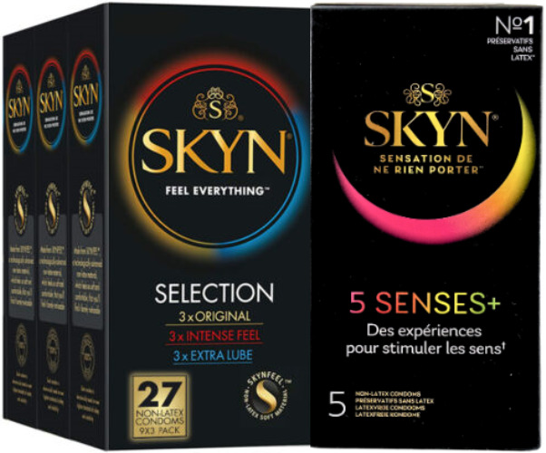 27 SKYN Selection Non Latex Condoms 3 x 9 pcs. + FREE Skyn 5 Senses 5 pcs.
