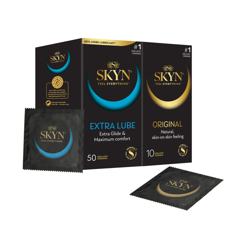 SKYN Extra Lube Condoms Pack of 50 & Original Condoms Pack of 10 / Skynfeel Latex Free for Men, Regular Size, Extra Lubricated, Th