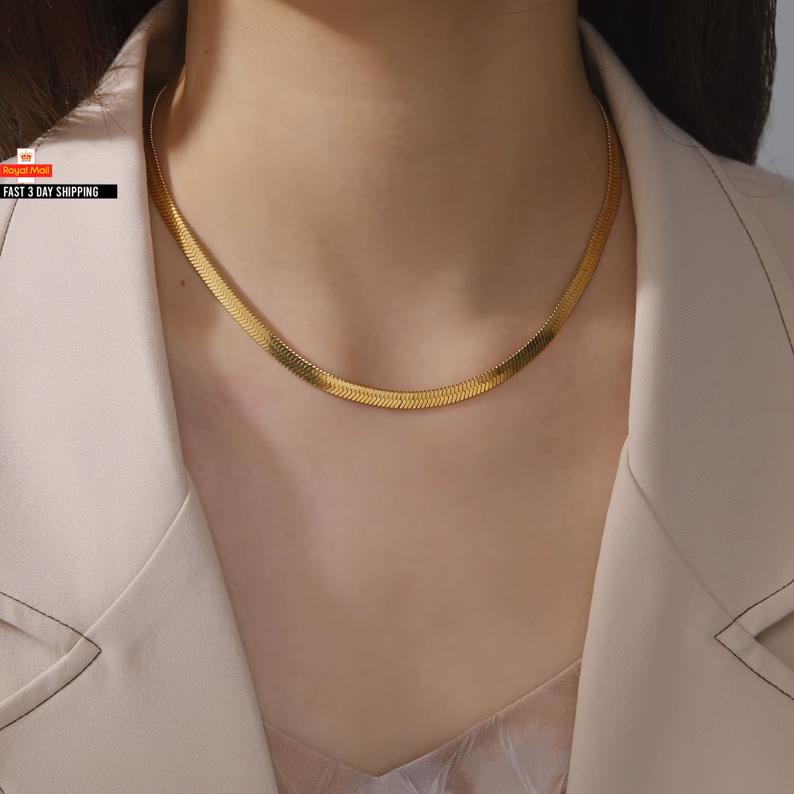Skyrim Stainless Steel Snake Chain Necklace for Women Men Gold Color Herringbone