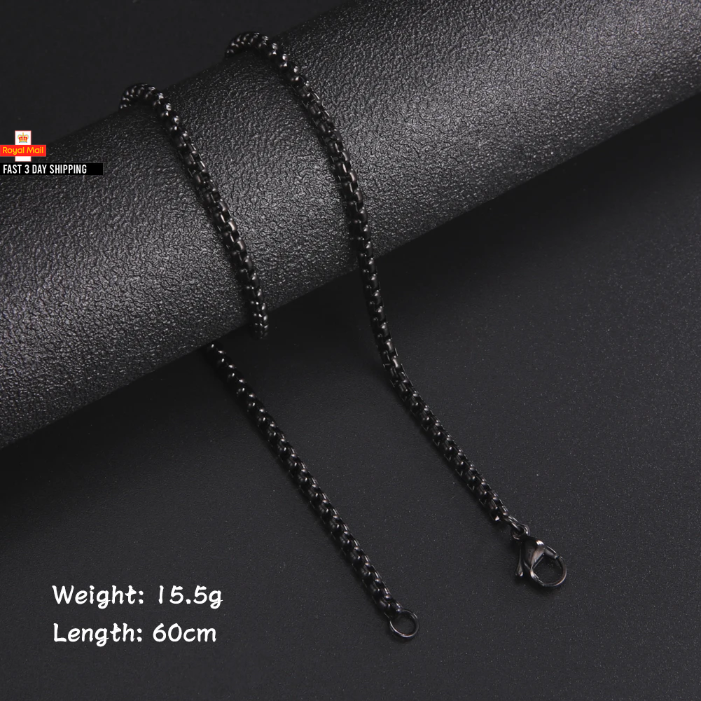 Skyrim Fashion 60Cm Long Box Chain Necklace Men Stainless Steel Black Gold Color