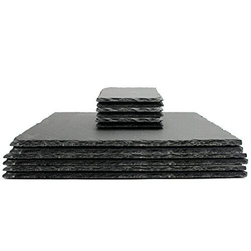 Natural Slate Placemats & Coasters - 12 pcs | Square Drink Coasters & Rectangle Food Place Mats | Fine Cut Tablemats | Contemporary Tableware | M&W