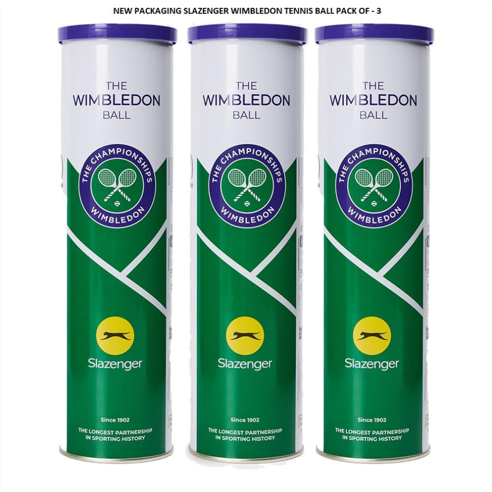 zaizah 3 x Slazenger Wimbledon Tennis Balls - Official Championship Ball - High-Performance, Durable, Suitable for All Court Types (Tin of 4)