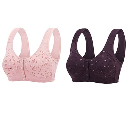 2pcs medium elderly women front button snap closure bras sleep everyday vest bra comfort wireless cotton ultra soft cup