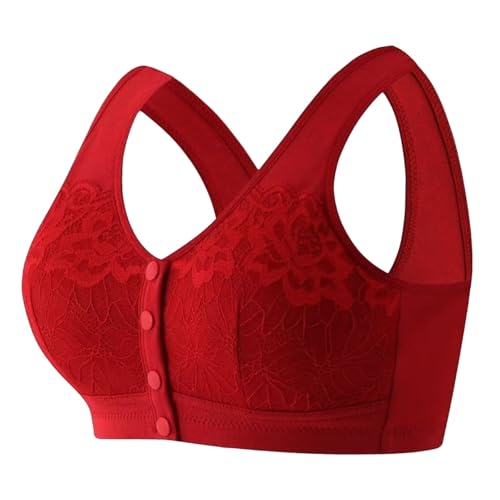 Sleep Bras For Women Uk-High Impact Sports Bras Women Comfortable Front Button Wireless Shaping Bra Lace Bras Without Underwire For Middle And Elderly (Red, 42)