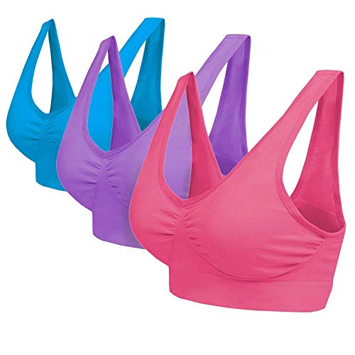 SIMIYA Super Comfort Bra, Womens Sports Bras Removable Pads Plus Size Sleep Bras for Girls in Yoga Bralette Leisure Stretch Crop Tops Vest (XXL, 3 Pack Black)