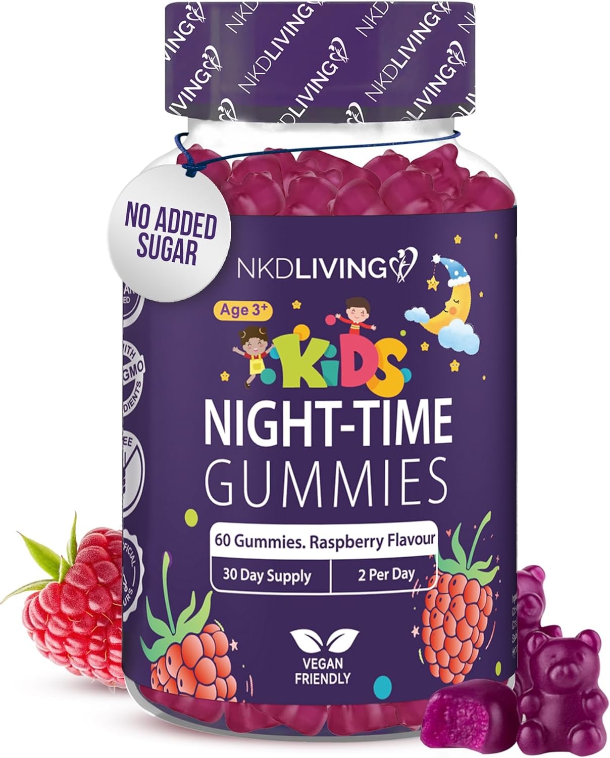 NKD Living Kids Night-Time Gummies – No Added Sugar - Natural Sleep Support w
