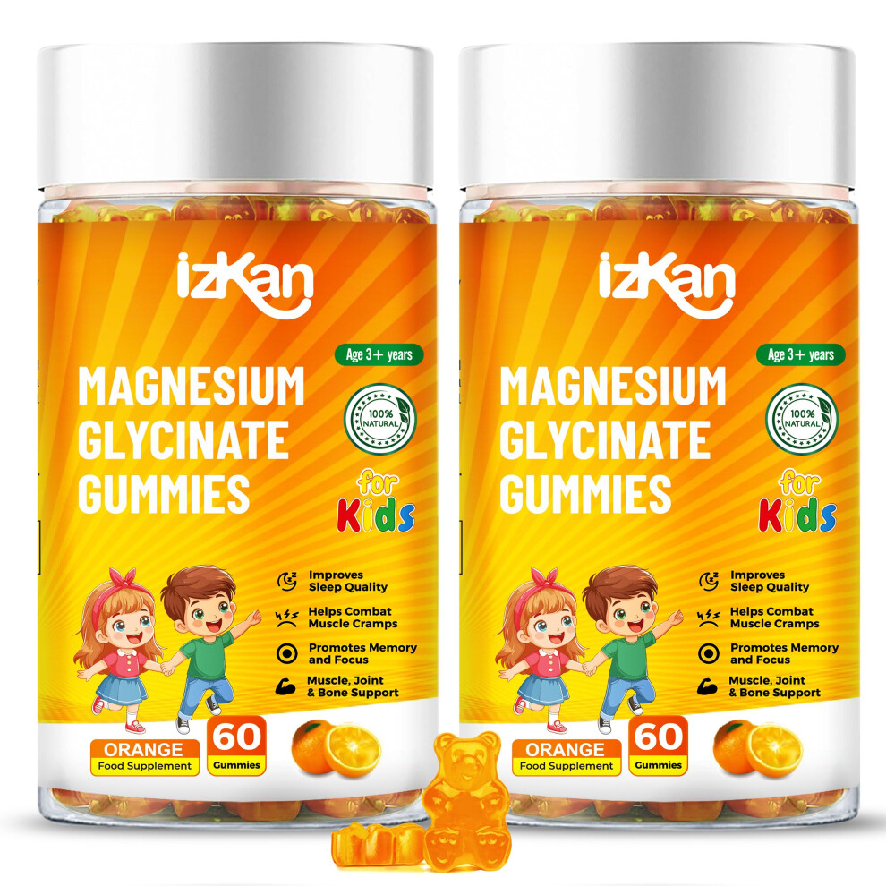 Magnesium Glycinate Gummies 100mg for Kids, Calm Magnesium Gummies for Sleep, Relaxation, Brain, Focus, Bones, No Melatonin, Glute